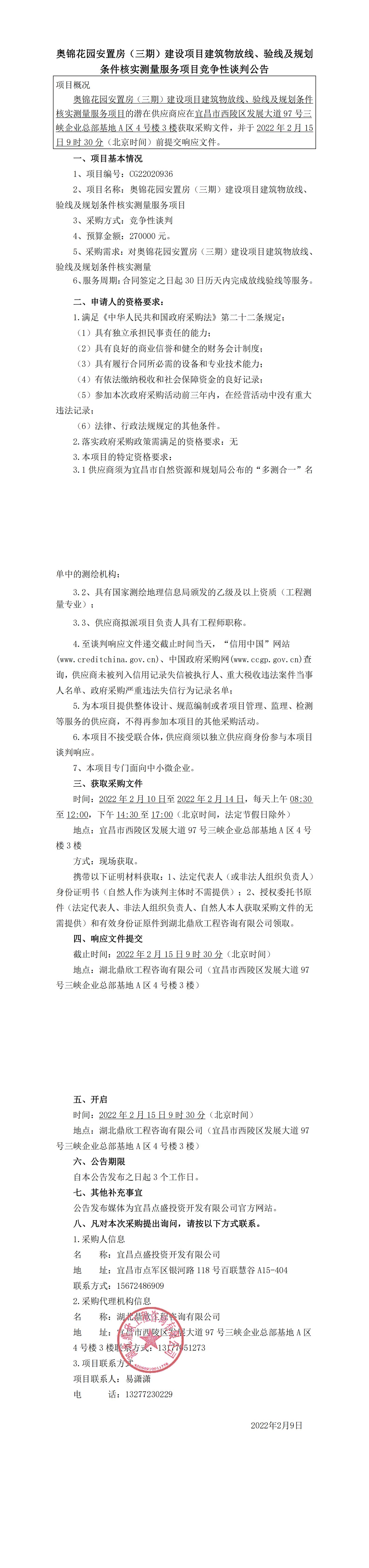 奧錦花園安置房(三期)建設(shè)項(xiàng)目建筑物放線、驗(yàn)線及規(guī)劃條件核實(shí)測量服務(wù)項(xiàng)目競爭性談判公告