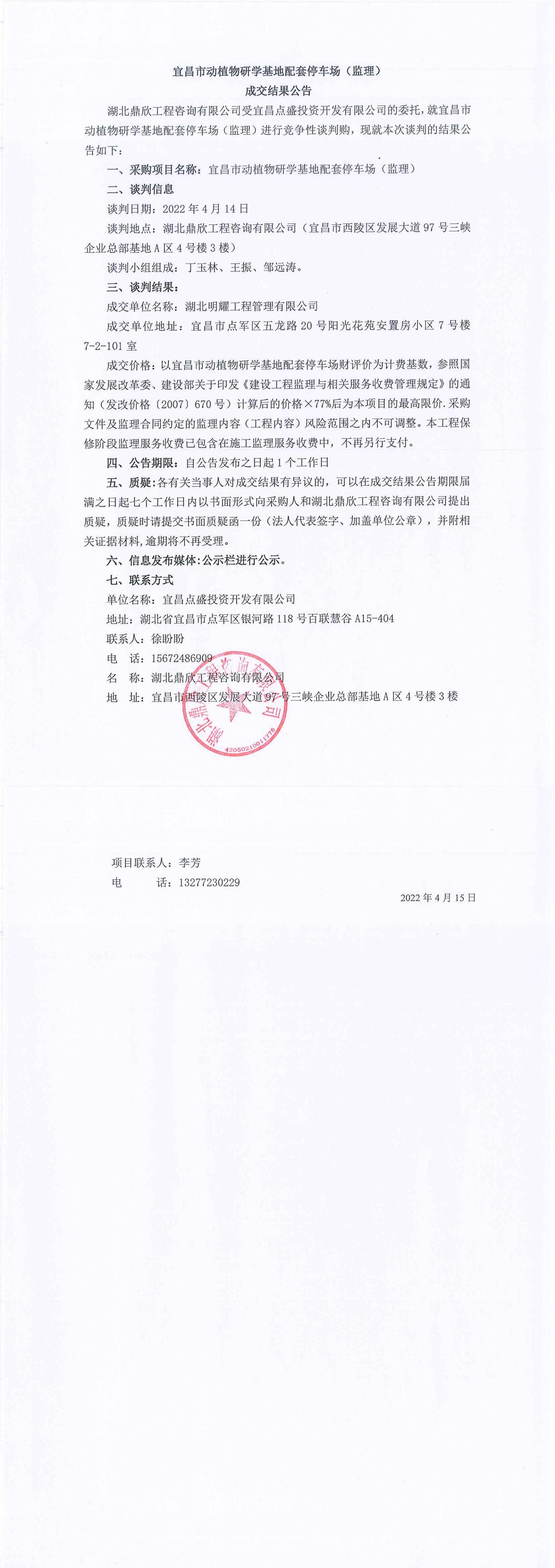 宜昌市動(dòng)植物研學(xué)基地配套停車場(chǎng)監(jiān)理成交公告