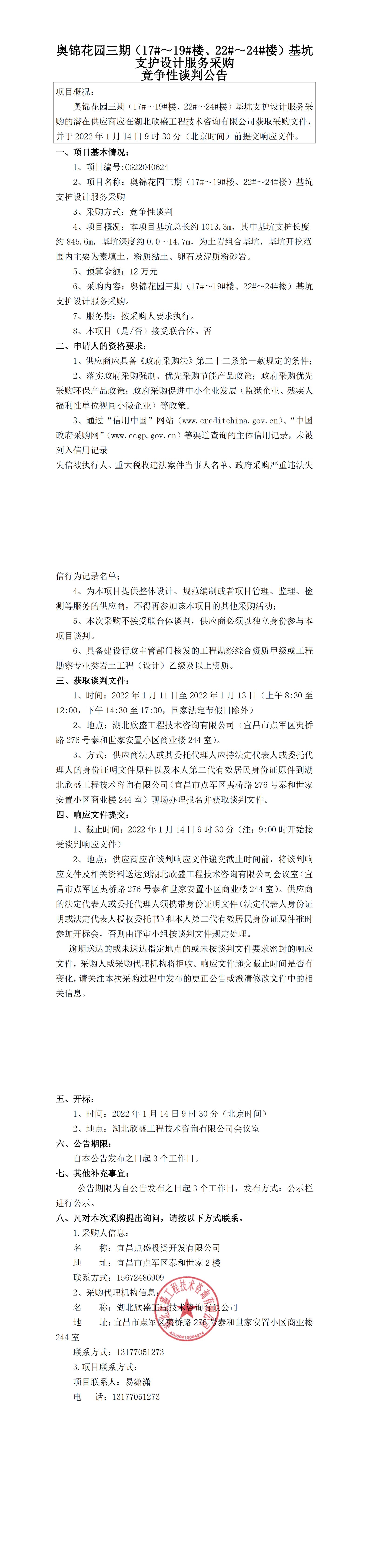 奧錦花園三期(17#~19#樓、22#~24#樓)基坑支護(hù)設(shè)計(jì)服務(wù)采購(gòu)競(jìng)爭(zhēng)性談判公告