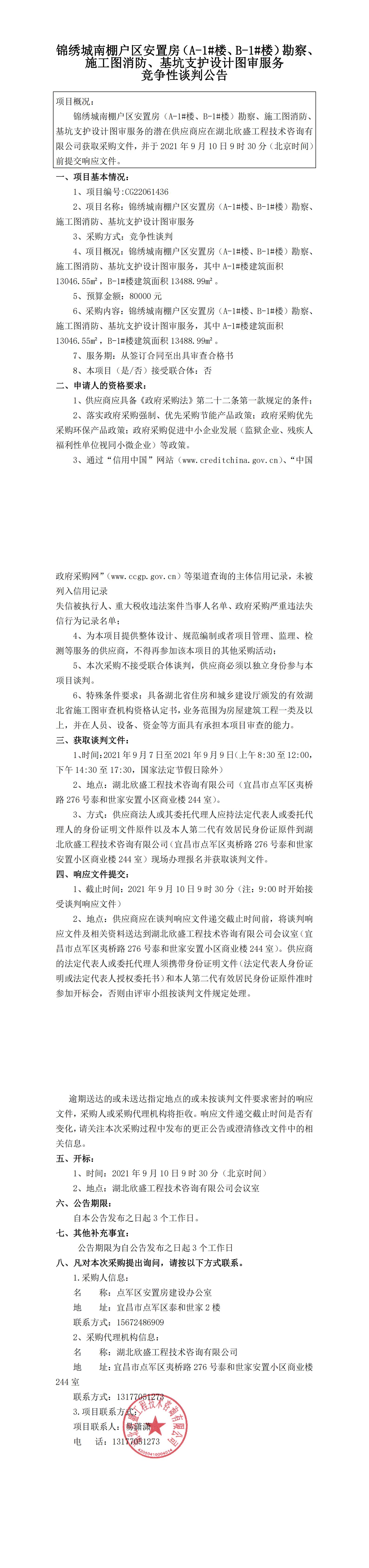錦繡城南棚戶區(qū)安置房(A-1#樓、B-1#樓)勘察、施工圖消防、基坑支護(hù)設(shè)計(jì)圖審服務(wù)競(jìng)爭(zhēng)性談判公告