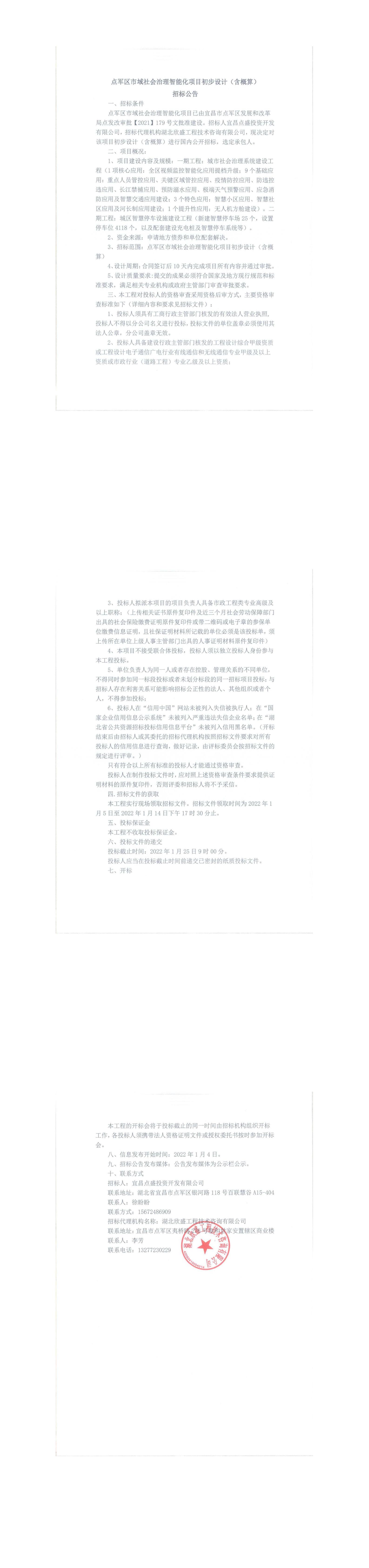 點(diǎn)軍區(qū)市域社會治理智能化項(xiàng)目初步設(shè)計(jì)(含概算)招標(biāo)公告