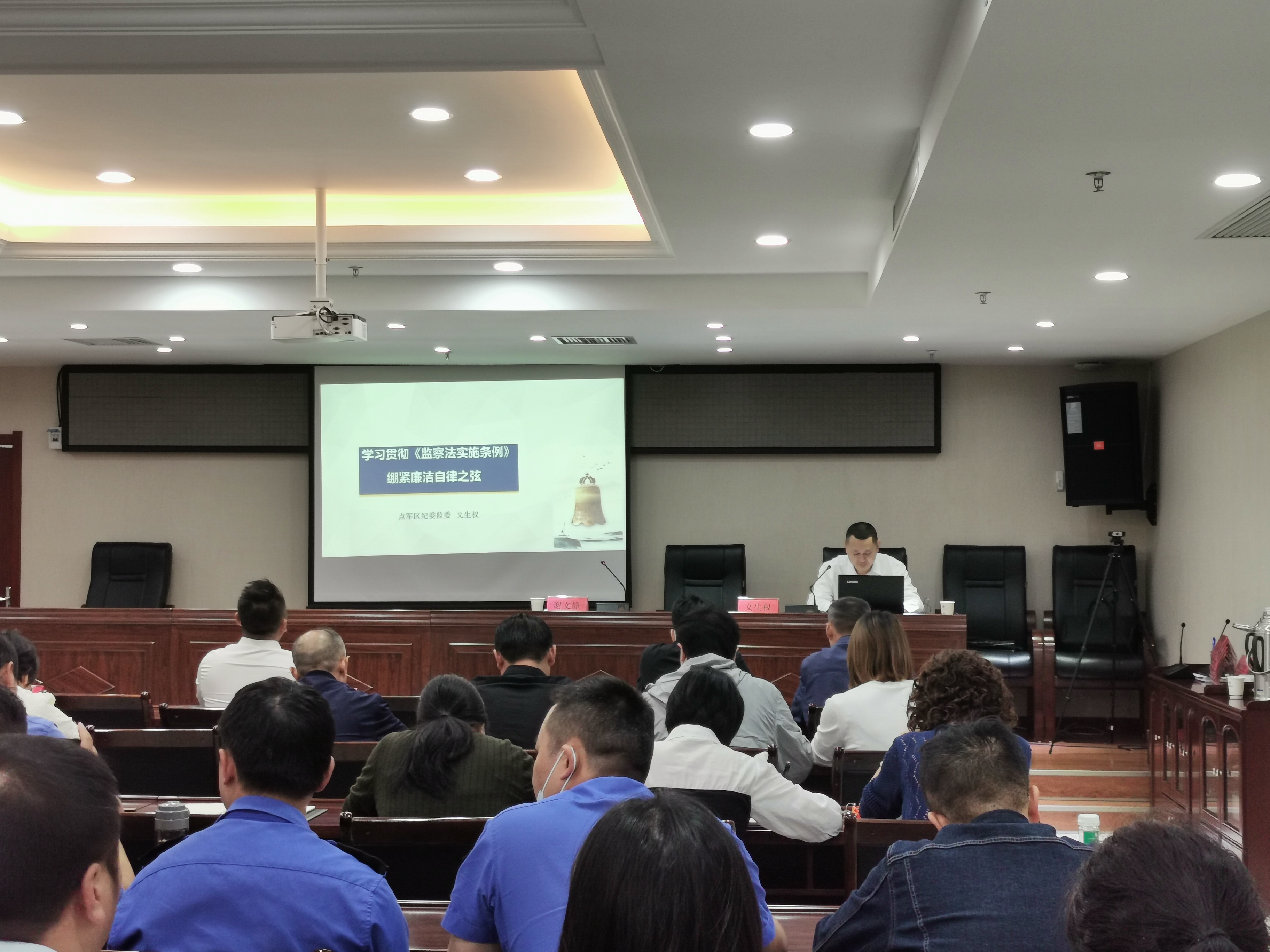 宣講以《學(xué)習(xí)貫徹<監(jiān)察法實施條例>繃緊廉潔自律之弦》為題,從《監(jiān)察法》及實施條例的關(guān)系,《條例》制定的背景、重要意義及主要內(nèi)容,職務(wù)犯罪釋義及幾種典型職務(wù)犯罪解析,公職人員禁止經(jīng)商辦企業(yè)的相關(guān)規(guī)定,如何做一名遵紀(jì)守法的黨員干部五個方面進(jìn)行講解,以案說紀(jì),進(jìn)一步教育廣大黨員干部樹牢紀(jì)法意識。