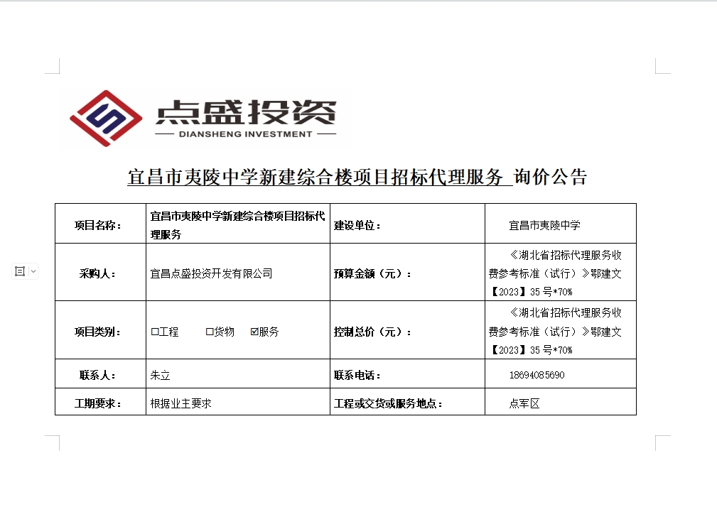 宜昌市夷陵中學(xué)新建綜合樓項(xiàng)目招標(biāo)代理服務(wù)詢(xún)價(jià)公告