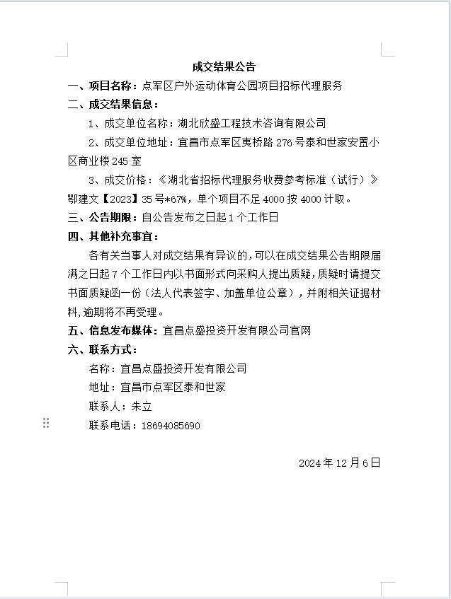 發(fā)布時間:2024/12/6 來源:宜昌點盛投資開發(fā)有限公司 訪問:4663