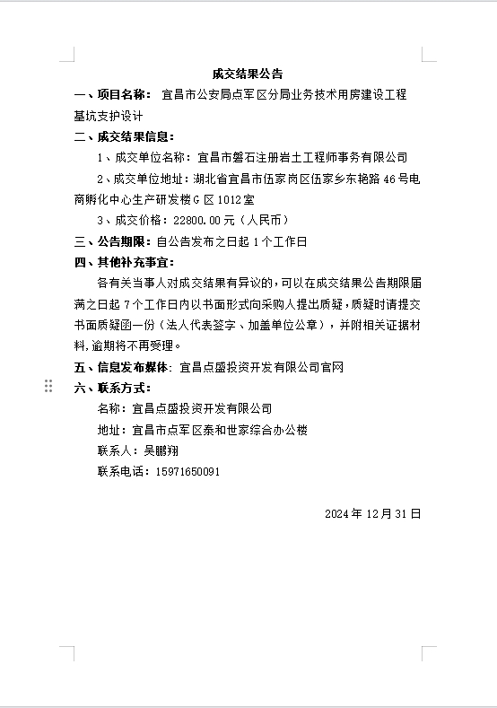 宜昌市公安局點軍區(qū)分局業(yè)務(wù)技術(shù)用房建設(shè)工程基坑支護(hù)設(shè)計成交公告