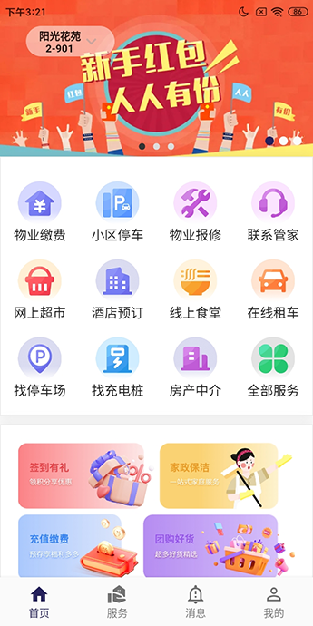 | 包括物業(yè)繳費(fèi)、小區(qū)停車、物業(yè)報(bào)修、意見反饋、樓棟管家、賬單查詢、訪客邀請(qǐng)、家政清潔、養(yǎng)老護(hù)理、寵物代養(yǎng)等功能。 物業(yè)繳費(fèi):自動(dòng)生成房屋賬單,業(yè)主足不出戶在手機(jī)端完成物業(yè)繳費(fèi)。