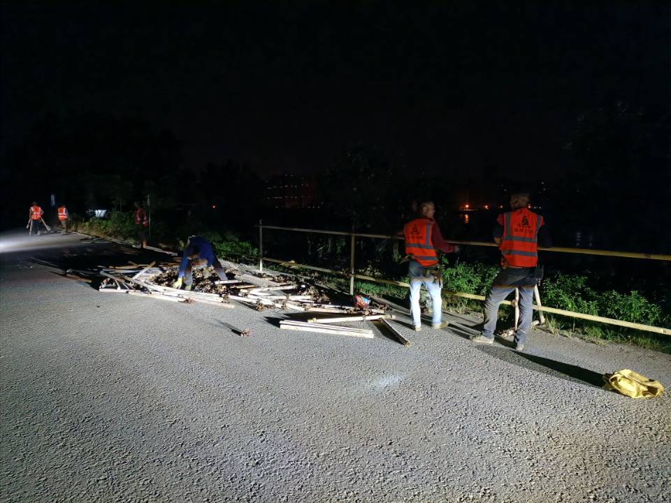 (通訊員譚金城、王隴坤)為確保伍家崗長(zhǎng)江大橋開(kāi)放日參觀人員安全,7月29日晚,點(diǎn)盛公司工程部現(xiàn)場(chǎng)指導(dǎo)施工單位克服種種困難,連夜搭設(shè)臨邊防護(hù)近千米,圓滿完成區(qū)委、區(qū)政府交辦的任務(wù),體現(xiàn)了點(diǎn)軍住建人的責(zé)任與擔(dān)當(dāng)。